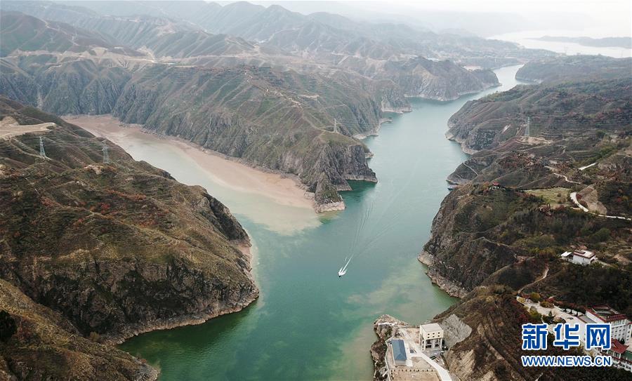 这是10月24日无人机拍摄的刘家峡水库库区和水库大坝。 新华社记者 陈斌 摄