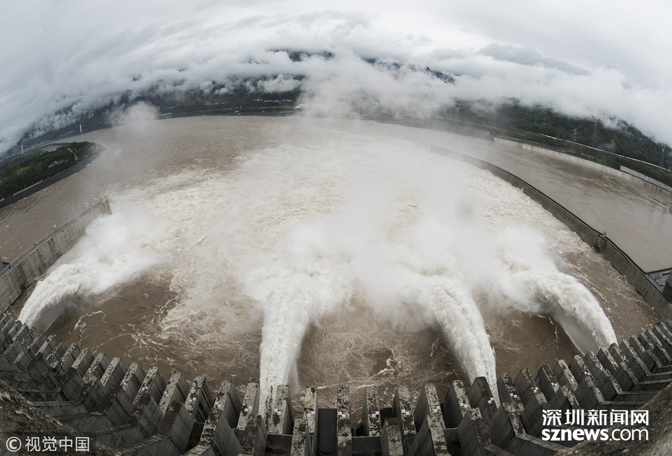 深圳新闻网讯  2018年7月5日,三峡大坝今年首次开闸泄洪。当天,三峡大坝开启5个泄洪孔下泄洪水,至中午12点左右减至2个。