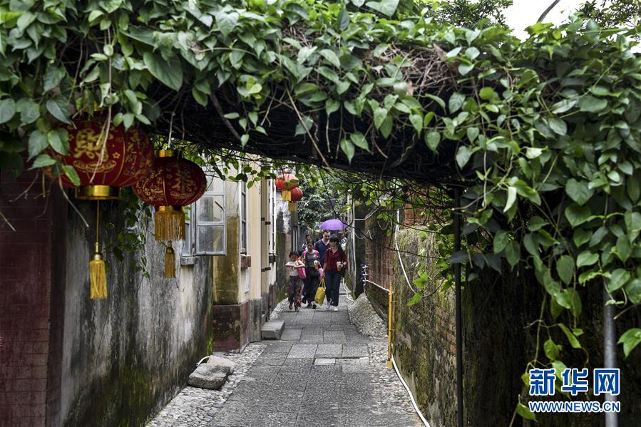 6月1日,游人在古驿道旁的唐家湾镇金鼎会同村游览。