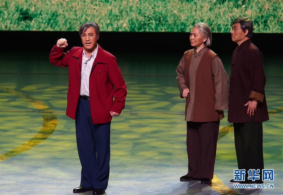 6月2日,演员在第十二届中国艺术节闭幕式上汇报演出获得文华大奖的河北梆子《李保国》选段。 新华社记者 任珑 摄