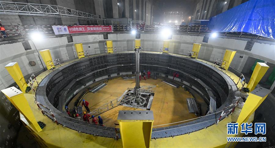乌东德水电站左岸地下电站主厂房内的6号机组正在建设中(5月30日摄)。 新华社记者陈晔华摄