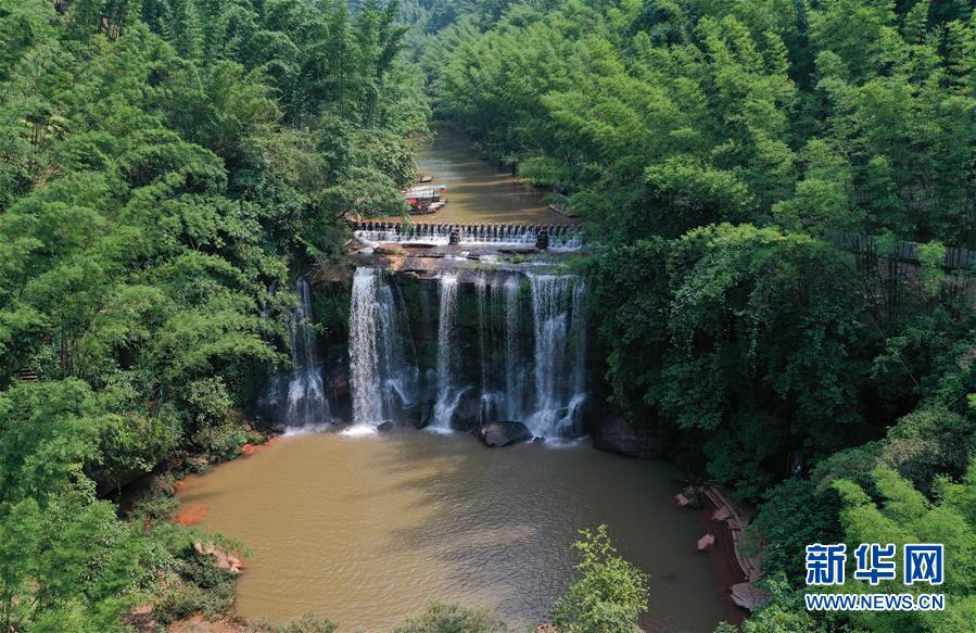 贵州赤水四洞沟景区一景(6月4日摄)。 贵州遵义赤水市有众多大大小小的瀑布群,素有“千瀑之市”的美誉,飞瀑美景吸引八方游客前来赏景度假。 新华社记者郑雅宁摄