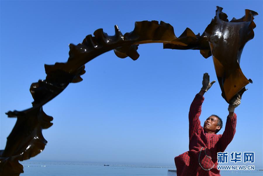 海岛居民在晾晒海带(5月23日摄)。新华社记者 朱峥 摄