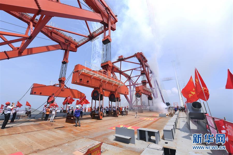 福平铁路平潭海峡公铁两用大桥元洪航道桥主桥成功合龙现场(6月5日摄)。