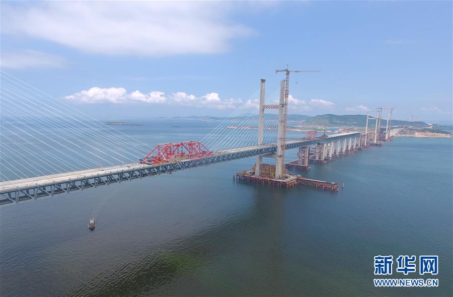 6月5日,福平铁路平潭海峡公铁两用大桥元洪航道桥主桥正式合龙。 新华社记者 林善传 摄