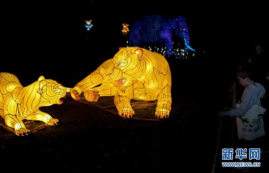6月8日,在澳大利亚悉尼塔朗加动物园,游客参观动物造型花灯。新华社记者 白雪飞 摄