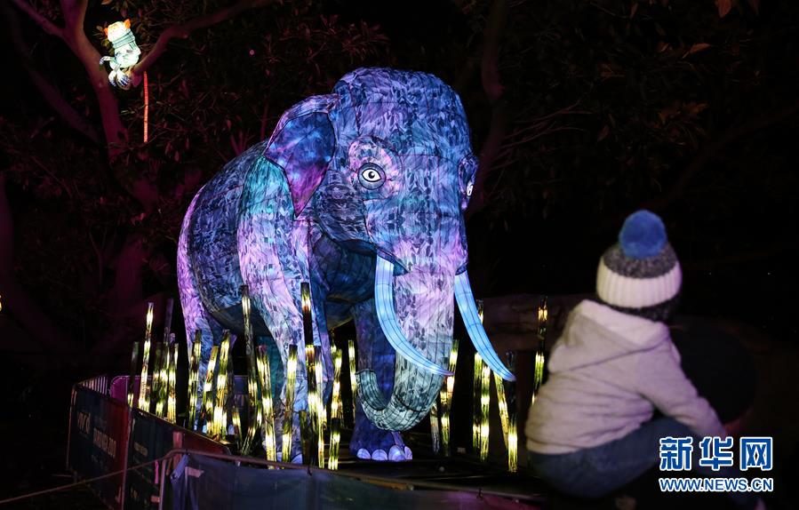 6月8日,在澳大利亚悉尼塔朗加动物园,游客参观大象造型花灯。新华社记者 白雪飞 摄