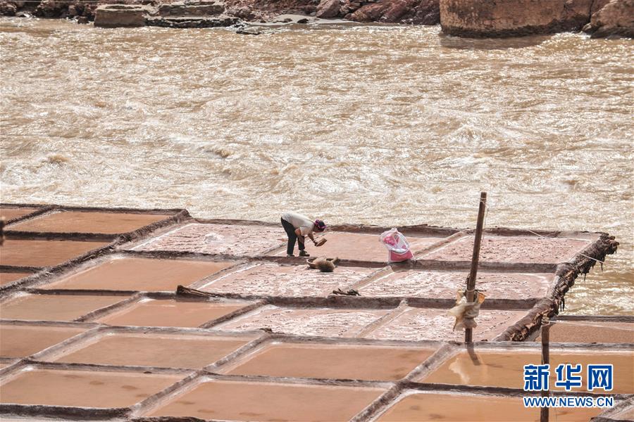 西藏芒康县纳西民族乡加达村村民在盐田晒盐(6月4日摄)。新华社记者晋美多吉摄