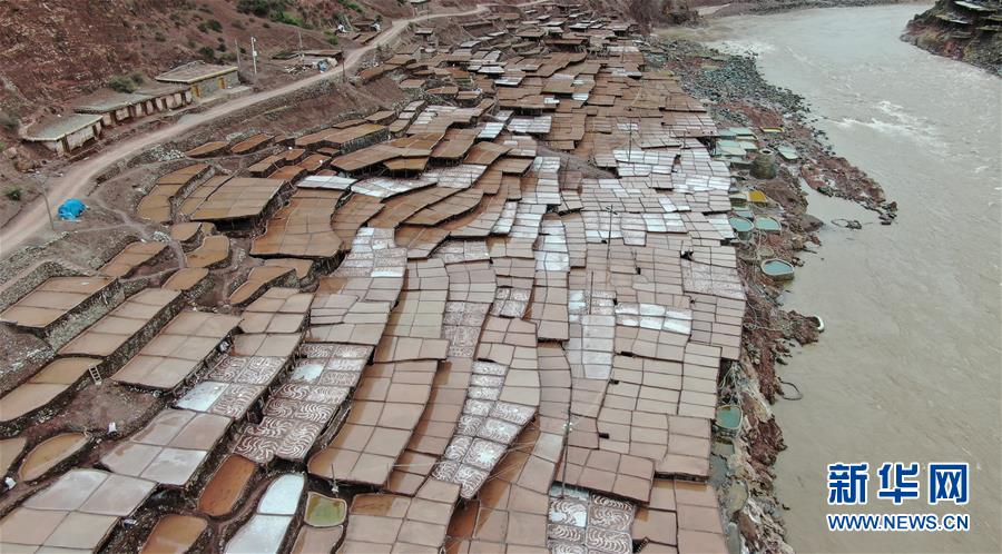 这是位于澜沧江畔的西藏芒康县纳西民族乡加达村的盐田(6月4日无人机拍摄)。新华社记者晋美多吉摄