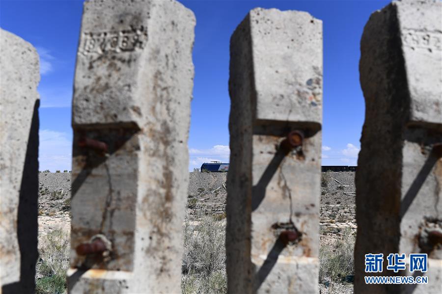 一列火车行驶在青海省海西蒙古族藏族自治州德令哈市境内的青藏铁路线上(2018年6月28日摄)。新华社记者张宏祥摄