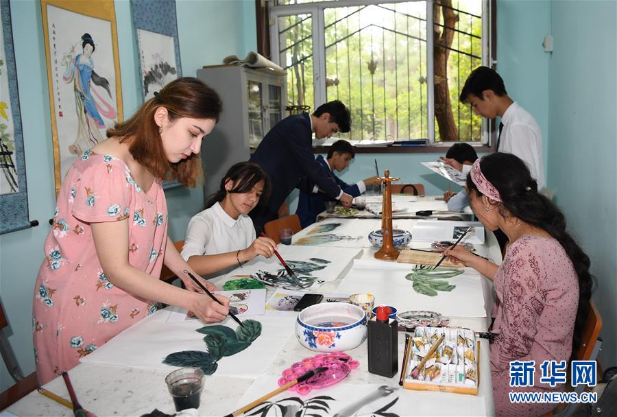 6月10日,在塔吉克斯坦首都杜尚别,学生在塔吉克斯坦民族大学孔子学院画画。 塔吉克斯坦共和国,简称塔吉克斯坦,是位于中亚东南部的内陆国家。塔吉克斯坦是多民族国家,全国共有86个民族,人口约910万。 新华社记者沙达提摄