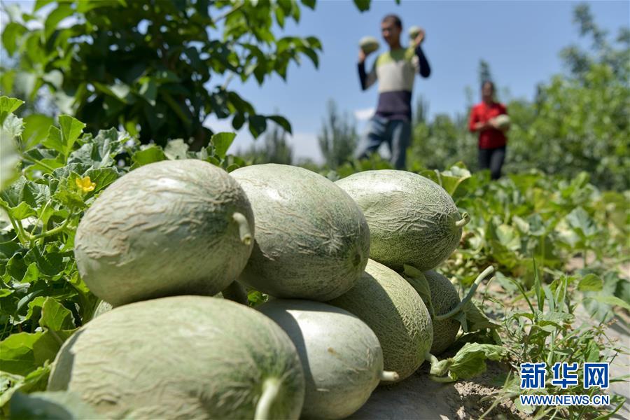6月23日,新疆喀什地区巴楚县的瓜农在采摘留香瓜。