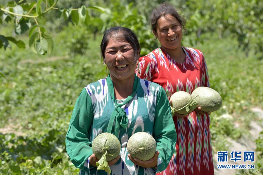 6月23日,在新疆喀什地区巴楚县,瓜农展示刚采摘的留香瓜。新华社记者 丁磊 摄