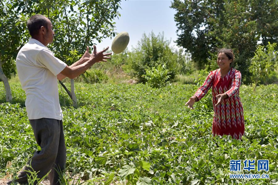 6月23日,新疆喀什地区巴楚县的瓜农在采摘成熟的留香瓜。新华社记者 丁磊 摄
