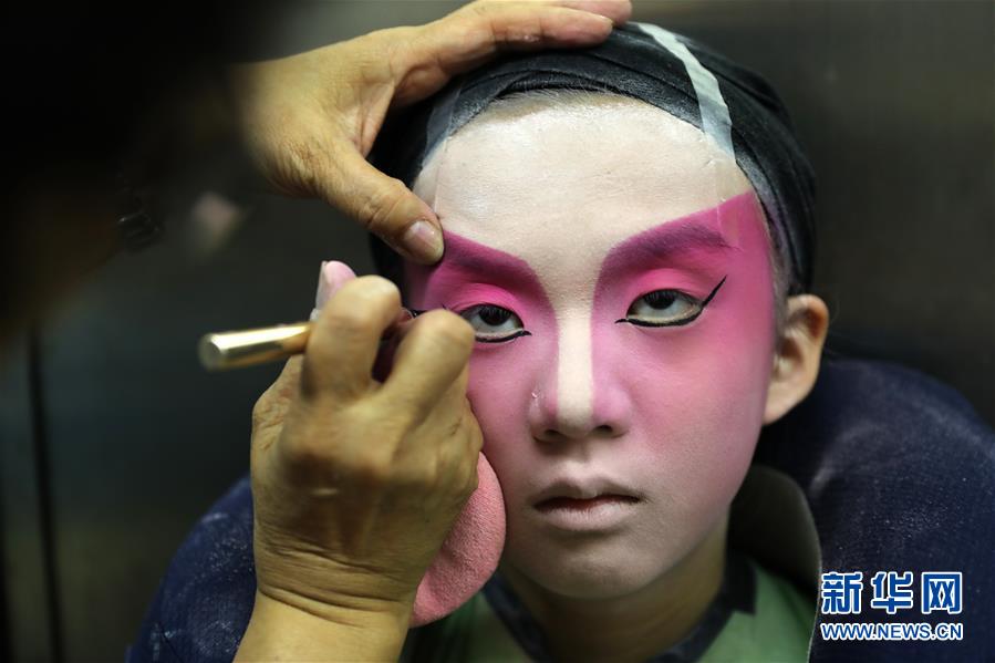 粤剧小演员陆瑞徽在画经典“红白脸”妆容(6月8日摄)。 声辉粤剧推广协会成立于2003年,是香港重要粤剧艺术团体之一,致力于向青少年推广粤剧。协会目前有两个初班,3个中班,一个青少年班。粤剧又称“广东大戏”,表演技艺包括“唱做念打”,即唱功、身段、台词、武打,主要流行于广东、广西和香港、澳门等地区。2009年,粤剧被列入联合国教科文组织人类非物质文化遗产代表作名录,今年正逢十周年。 新华社记者 吴晓初 摄