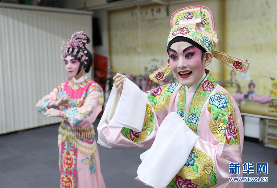 陆瑞徽(左)和利文喆在表演折子戏《艳曲醉周郎》(6月8日摄)。 声辉粤剧推广协会成立于2003年,是香港重要粤剧艺术团体之一,致力于向青少年推广粤剧。协会目前有两个初班,3个中班,一个青少年班。粤剧又称“广东大戏”,表演技艺包括“唱做念打”,即唱功、身段、台词、武打,主要流行于广东、广西和香港、澳门等地区。2009年,粤剧被列入联合国教科文组织人类非物质文化遗产代表作名录,今年正逢十周年。 新华社记者 吴晓初 摄