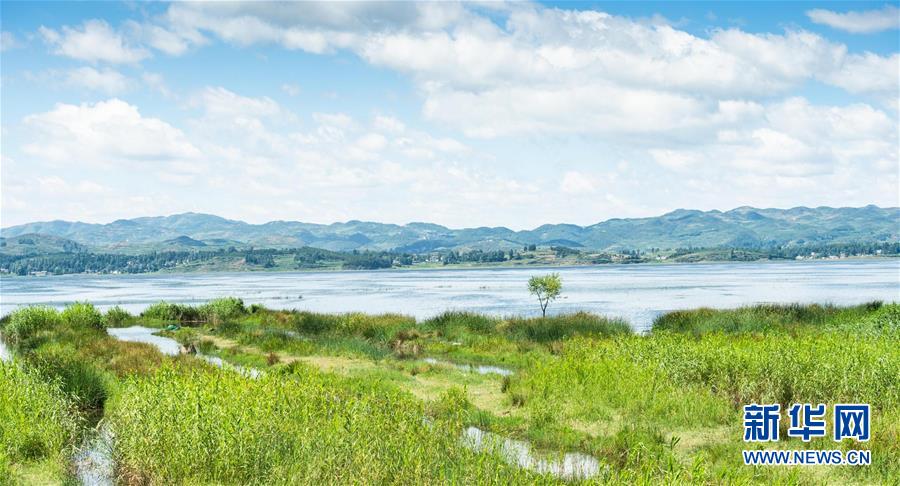草海国家级自然保护区一隅,绿地部分是退地还湖成果(6月20日摄)。 新华社记者 陶亮 摄