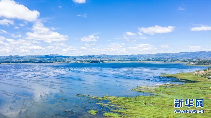 6月20日无人机拍摄的草海国家级自然保护区,绿地部分是退耕还湖成果。 新华社记者 陶亮 摄