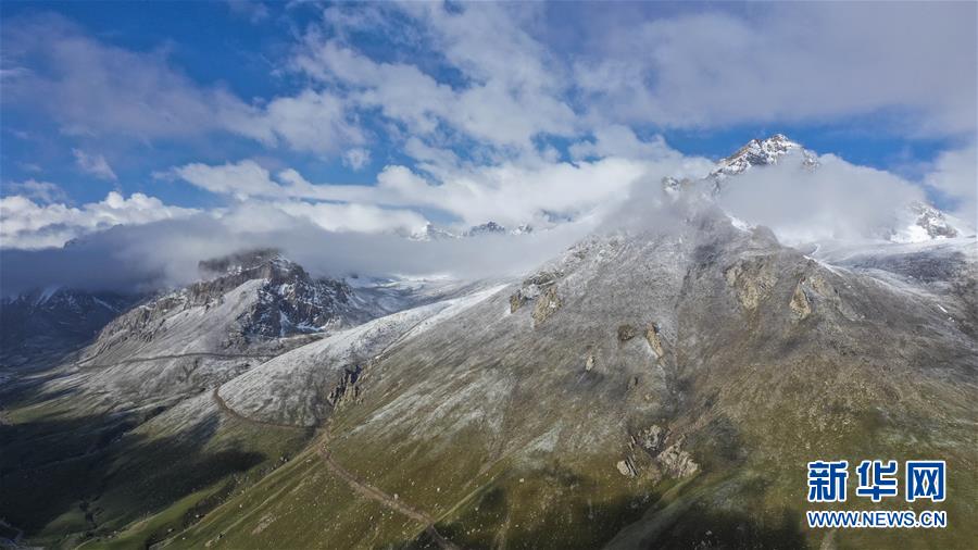 这是雪后初霁的拉依布拉克牧场景观(6月22日无人机拍摄)。
