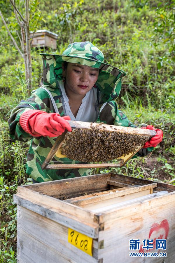 在云南省西盟县勐梭镇班母村中华蜂养殖基地,二妹在检查蜂箱情况(6月16日摄)。 新华社记者 胡超 摄