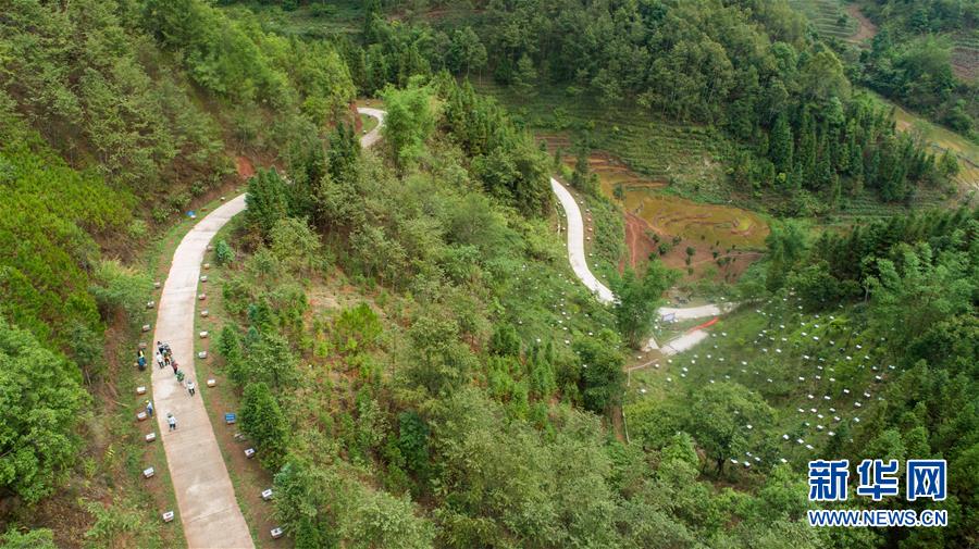云南省西盟县勐梭镇班母村中华蜂养殖基地一景(6月16日无人机拍摄)。 新华社记者 胡超 摄