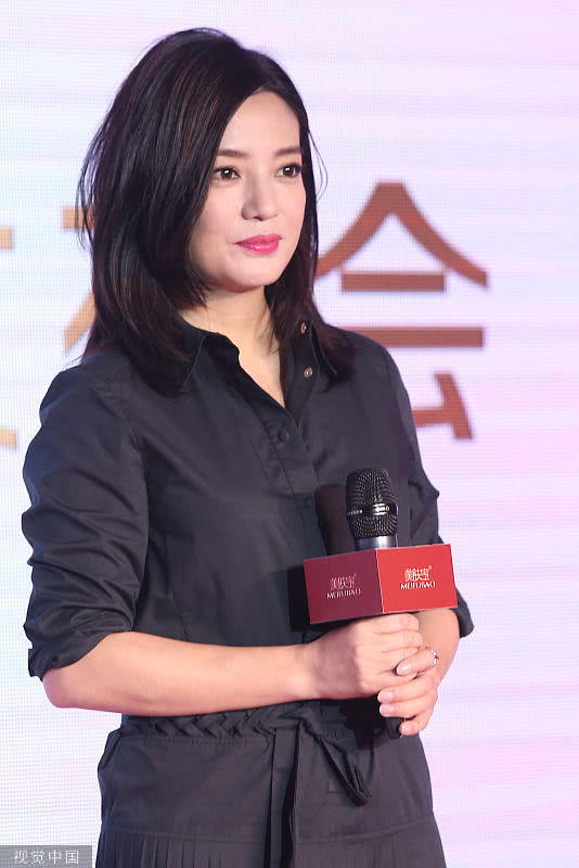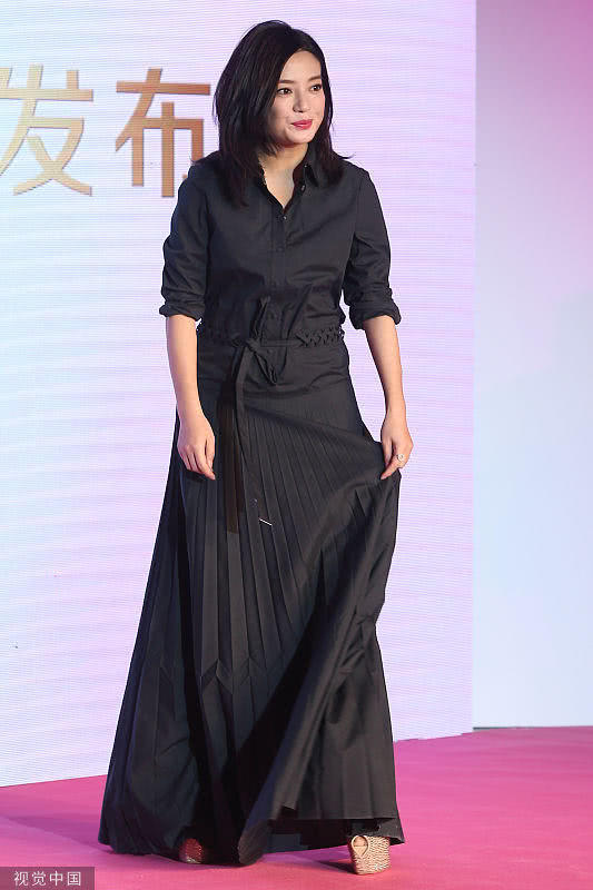 赵薇一身黑色长裙现身发布会现场,化着淡妆的她看起来气色不错。赵薇的脸颊圆润,看起来比影视剧中胖了不少。