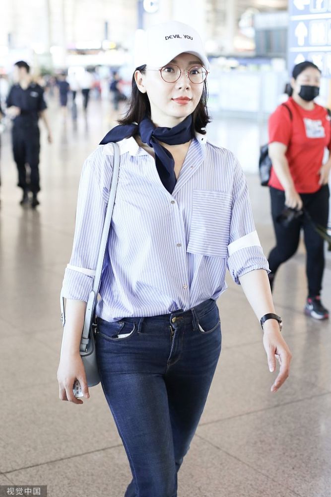 2019年6月30日,北京,陈数亮相机场,她身穿条纹衬衫搭配蓝色方巾完美诠释知性美,简单造型非常耐看,已经42岁的她皮肤也是亮白嫩滑,堪称冻龄美人了。