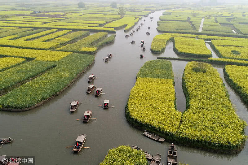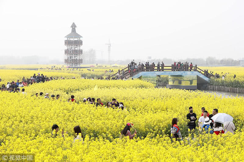 2019年4月7日,江苏省兴化市千垛菜花景区迎来旅游高峰期,数万游客前来欣赏盛开的油菜花,乐享假日好时光。