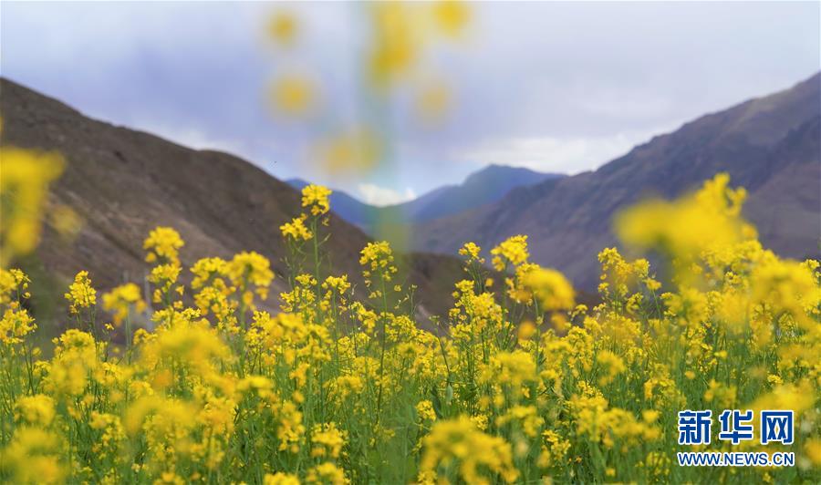 7月2日在拉萨市堆龙德庆区德庆乡拍摄的油菜花田。 近日,西藏各地的油菜花盛开,呈现出生机勃勃的夏日美景。 新华社记者 普布扎西 摄