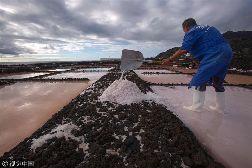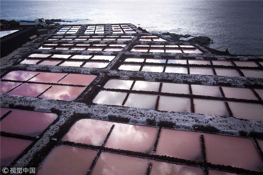 当地时间2018年11月26日,西班牙拉斯帕马斯岛,实拍萨利纳斯丰卡连特盐田。DESIREE MARTIN /视觉中国