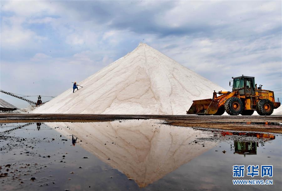 7月3日,唐山海港经济开发区大清河盐场的工人在洗盐场工作。新华社记者 杨世尧 摄