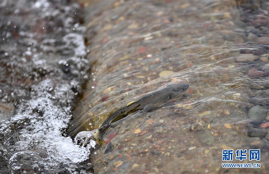 7月6日,在青海省刚察县沙柳河里,一条湟鱼在洄游。 盛夏时节,在我国最大的内陆咸水湖青海湖中,湟鱼开始成群结队沿着入湖河流逆流而上,到上游淡水河产卵,形成“半河清水半河鱼”的奇观。 新华社记者张宏祥摄