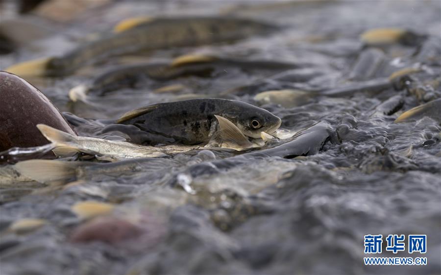 7月6日,在青海省刚察县沙柳河里,湟鱼向上洄游。 新华社记者 费茂华摄