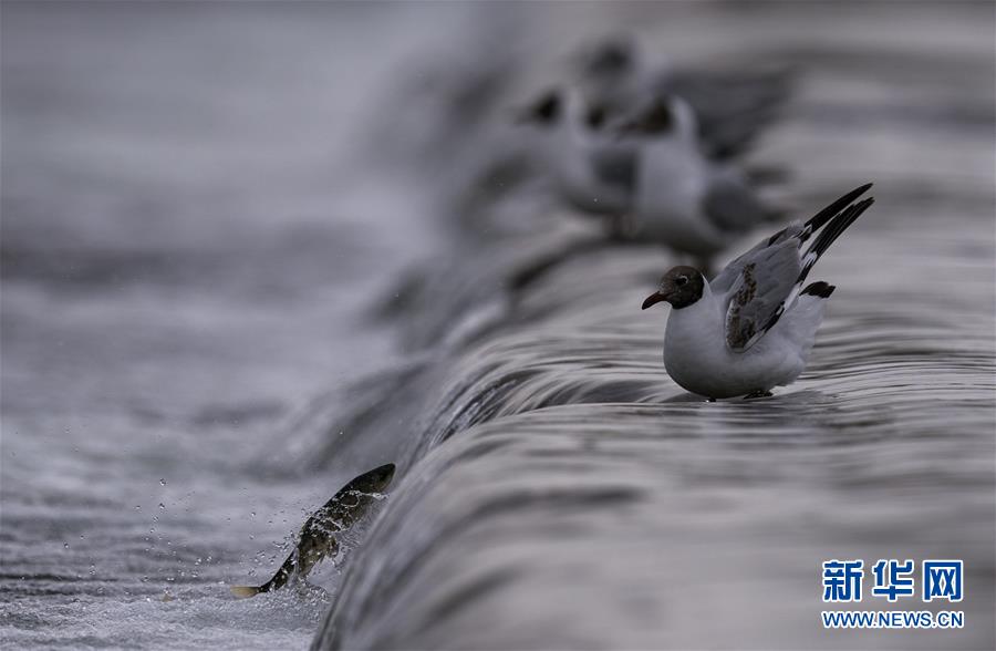 7月6日,在青海省刚察县沙柳河里,湟鱼跃起向上洄游。 新华社记者 费茂华摄