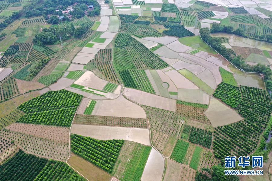 这是广西全州县凤凰镇凤凰嘴渡口附近的田园(6月29日无人机拍摄)。 新华社记者 陆波岸 摄