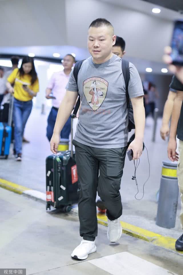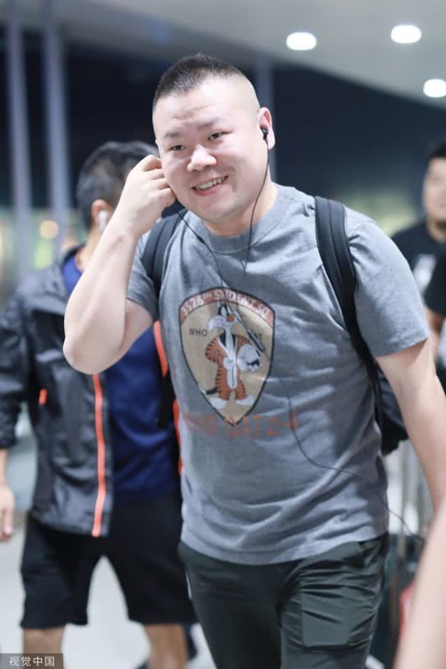 2019年7月8日,上海,岳云鹏现身机场。他穿灰色的卡通T恤现身,面对镜头强势比耶似被迫”营业“,化身行走的表情包喜感十足,还不忘摘下耳机微笑示人,小细节实力圈粉。