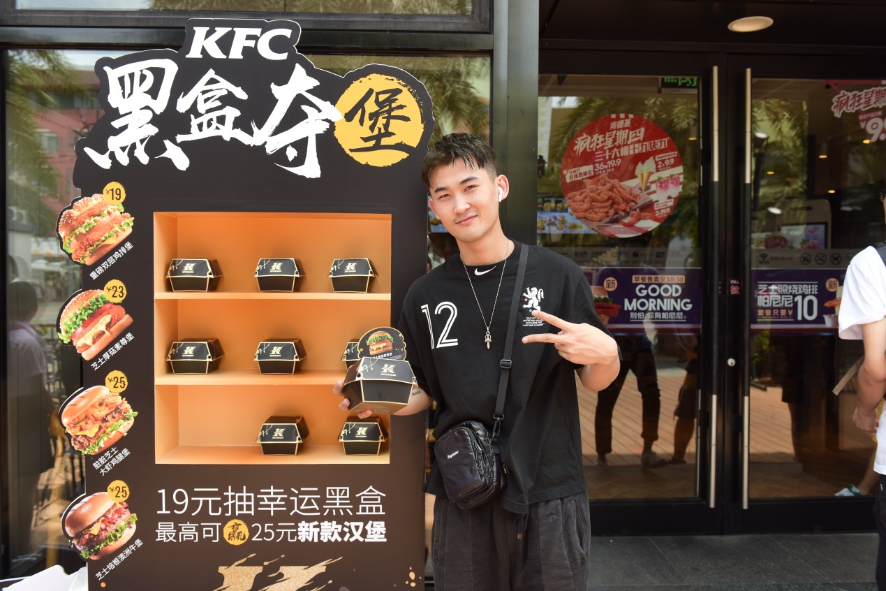 “没想到肯德基玩起了盲盒!拆开盒子的瞬间,感受到的快乐比拆快递还大!我有点理解我闺蜜疯狂买盲盒拆不同的‘小怪兽’的行为了!”通过黑盒夺堡拿到了脏脏芝士大虾堡的95后女孩小敏兴奋地说道,“又是鸡又是虾,太满足啦!超值超赞!”