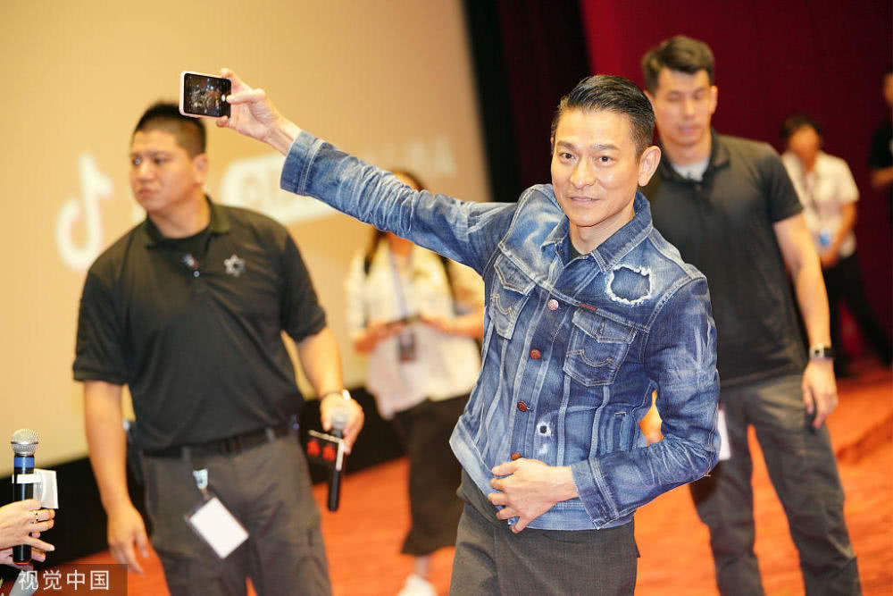 2019年7月10日,上海,刘德华、林嘉欣参加宣传《扫毒2》。