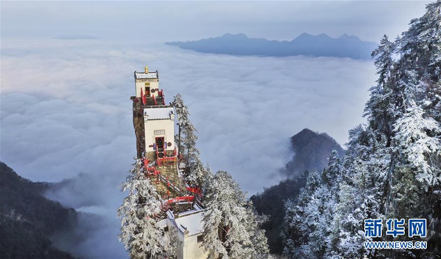 3月3日拍摄的塔云山金顶观音殿(无人机拍摄)。 新华社记者陶明摄
