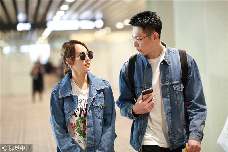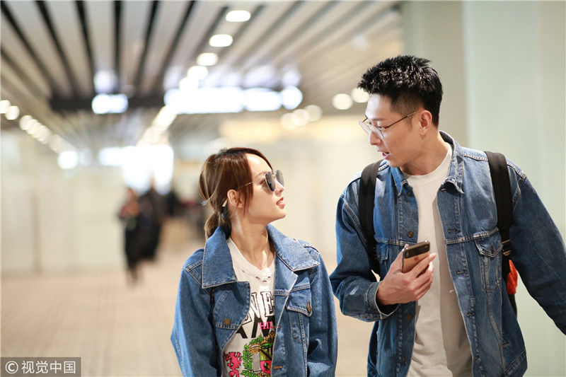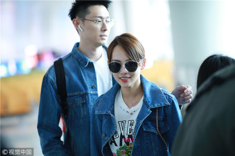 2019年4月1日,张嘉倪与老公买超现身机场,从广州飞往北京。两人同穿情侣牛仔装,一路对视热聊感情超甜,张嘉倪对镜头热情挥手举公仔,亲和力MAX。匿名/视觉中国编辑/陈进
