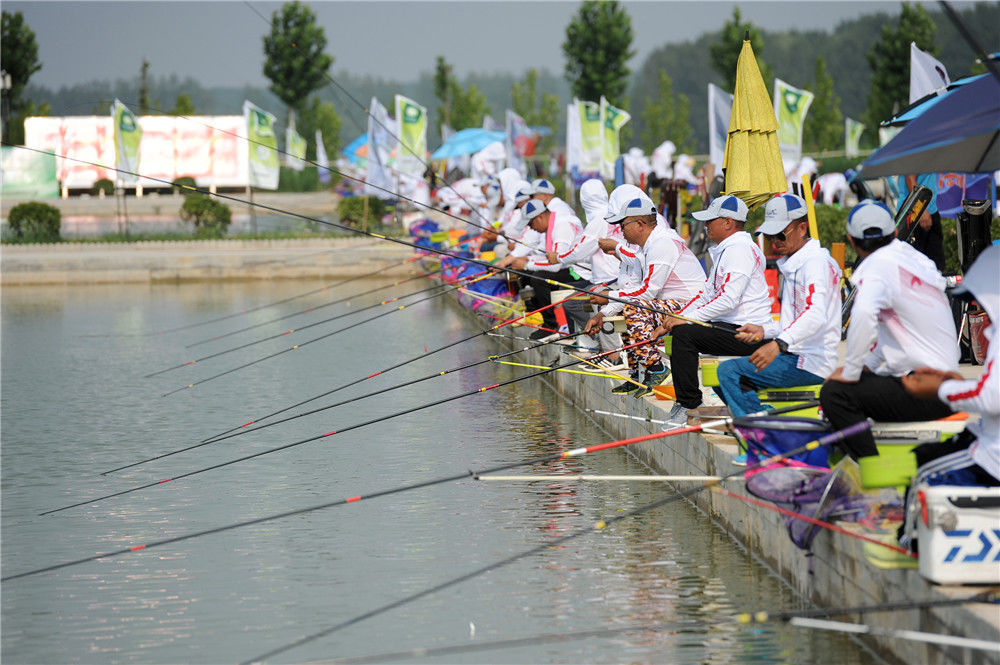 2018年7月7日,山西运城芮城,当日正值小暑,但酷热的天气没有抵挡住钓友们的热情。当裁判长“比赛开始”的指令发出,众钓友纷纷抛竿入水,手握鱼竿,静待鱼儿上钩。现场的鱼情也非常好,鱼儿们在水面上泛起一阵又一阵浪花,不一会就有钓友上鱼。刘宝成/视觉中国