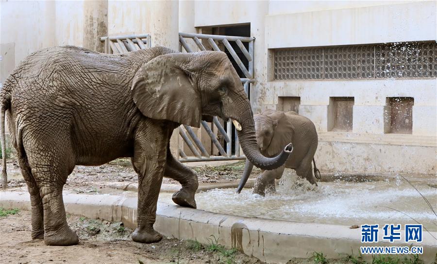 7月18日,在北京动物园,大象在水池内玩耍。新华社记者李欣摄