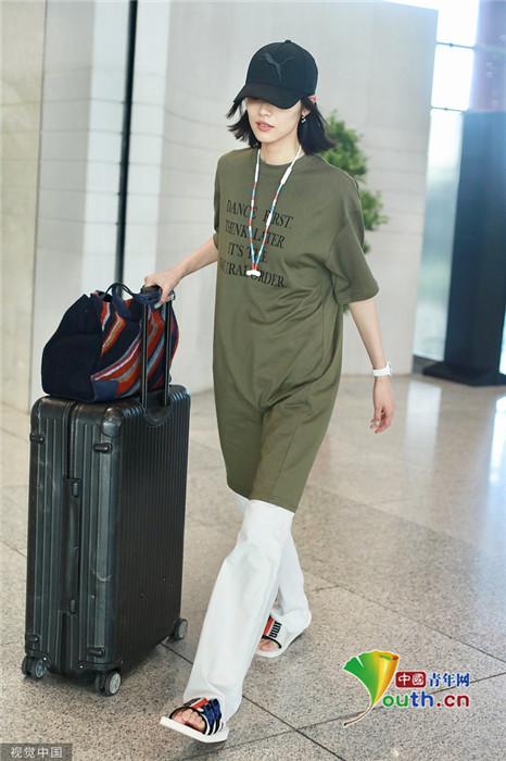 2019年7月23日,北京,刘雯现身机场。她头戴棒球帽,身穿oversize上衣脚踩拖鞋,走慵懒随性风,尽显超模气场,露出招牌笑容亲切又有感染力。