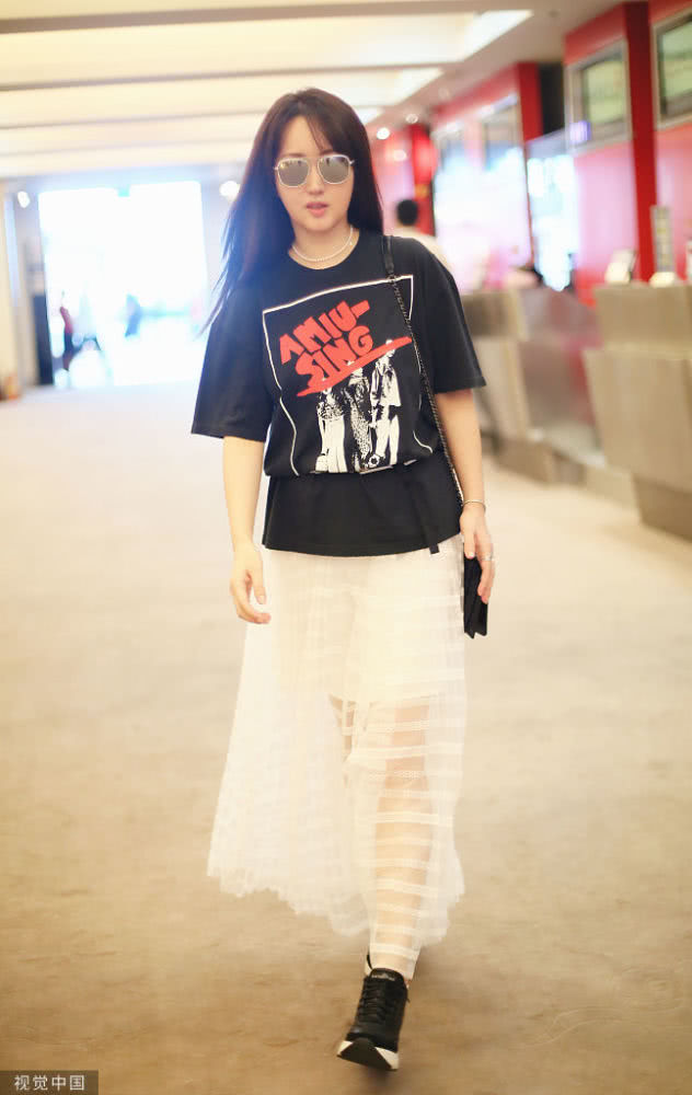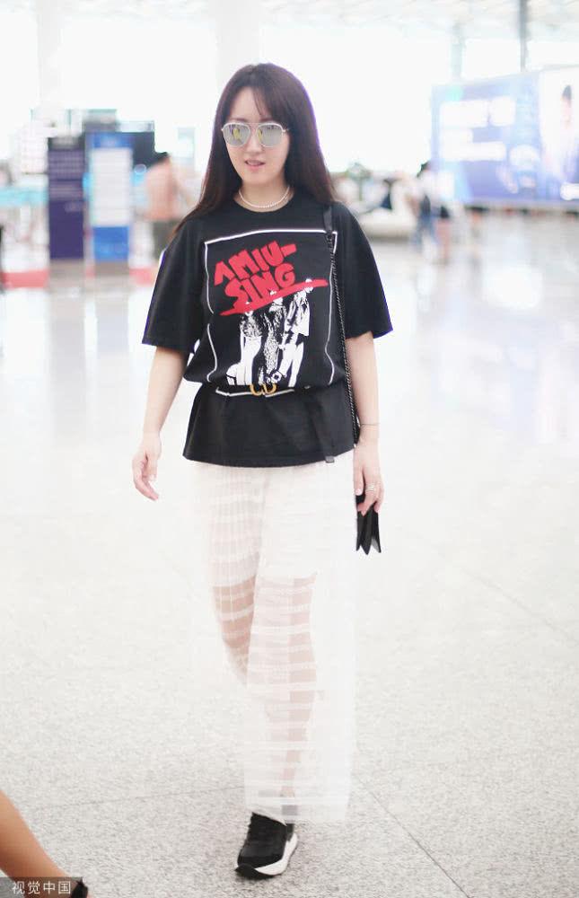 2019年7月30日讯,杨钰莹现身机场,穿黑T搭白色长裙洒脱时尚,挎CHANEL链条包,肤白貌美少女感十足。