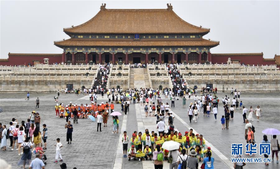 8月3日,游客在故宫参观。进入暑期以来,北京故宫博物院迎来游览高峰。故宫博物院采取每日游客限流、热点景区导流、供水和医疗保障等措施,确保游客安全。新华社记者李欣摄