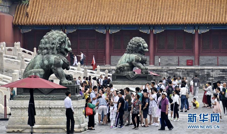 8月3日,游客在故宫参观。进入暑期以来,北京故宫博物院迎来游览高峰。故宫博物院采取每日游客限流、热点景区导流、供水和医疗保障等措施,确保游客安全。新华社记者李欣摄