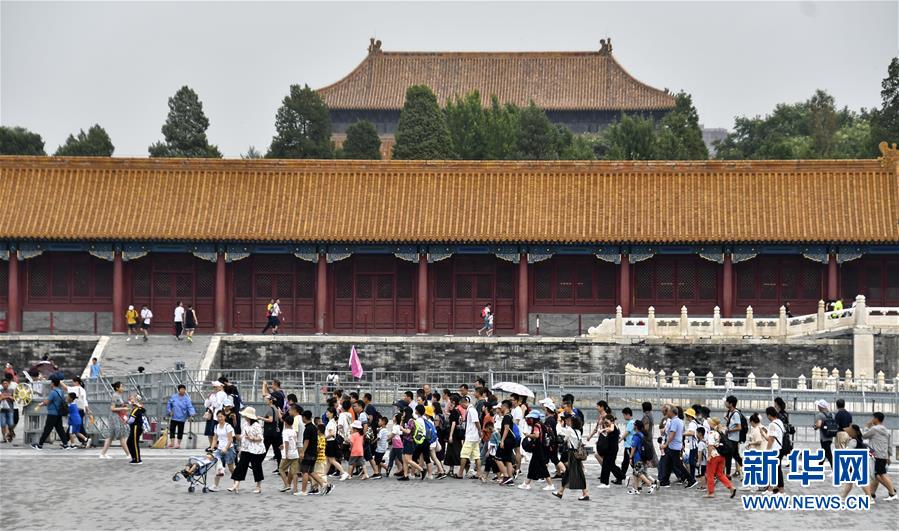 8月3日,游客在故宫参观。进入暑期以来,北京故宫博物院迎来游览高峰。故宫博物院采取每日游客限流、热点景区导流、供水和医疗保障等措施,确保游客安全。新华社记者李欣摄
