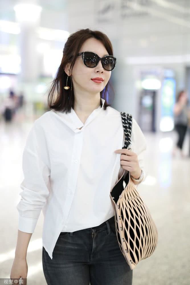 陈数穿白衬衫知性浅笑甜美迷人 架黑超拎渔网纹展职场女性魅力