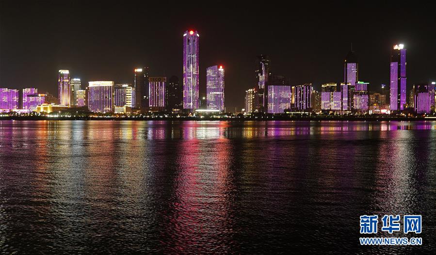 这是江西南昌赣江畔的灯光秀(8月6日摄)。 新华社记者万象 摄