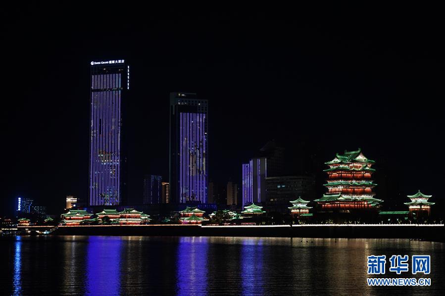 这是江西南昌赣江畔上演的灯光秀(8月6日摄)。 新华社记者周密 摄
